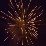 Эффекты: 1. Красно-синий пион с серебряными мерцающими огнями. 2. Золотая хризантема с треском. 3. Золотая ива с красными и синими огнями.